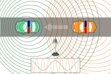 Beim Doppler-Radar berechnet man die Annäherungsgeschwindigkeit eines Objekts aus der gemessenen Frequenzänderung zwischen gesendetem und reflektiertem Signal. Die Besonderheit bei einem aktiven Radargerät ist jedoch, dass der Doppler-Effekt zweimal auftreten kann, auf dem Hin- und auf dem Rückweg. Ein Radarwarngerät, das die Signale des Hinwegs empfängt, misst eine Frequenz, die in Abhängigkeit von der Relativgeschwindigkeit variiert. Diese registrierte Frequenz wird von ihm reflektiert. Das Radargerät registriert die bereits Doppler-verschobenen Frequenzen wiederum in Abhängigkeit von der dann bestehenden Relativgeschwindigkeit. Im Fall eines unbeschleunigten Radargeräts tritt eine exakt zweifache Doppler-Verschiebung auf.