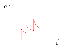 Mit steigender Photonenenergie nimmt der Wirkungsquerschnitt ab, wie die negative Potenz in der Formel zeigt; dies gilt allerdings nur, solange eine gleichbleibende Zahl der Elektronen des Atoms zur Ionisation verfügbar ist. Sobald die Photonenenergie die Bindungsenergie der jeweils nächst fester gebundenen Elektronenschale erreicht, springt der Wirkungsquerschnitt auf einen entsprechend höheren Wert, von dem er dann bei weiterem Energieanstieg wieder allmählich abfällt. Dies führt im Absorptionsspektrum zu charakteristischen Strukturen, den Absorptionskanten. Elektronen-Bindungsenergien reichen von wenigen eV bis zu rund 100 keV in Elementen hoher Ordnungszahl.
