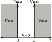 sich in dem potentialfreien Raum zwischen zwei unendlich großen Potentialen befindet. Die als „Wände“ bezeichneten Grenzen (eine bei