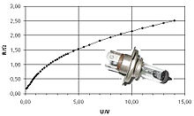 Glühlampen eignen sich auch als Überlastschutz; sie besitzen im kalten Zustand einen Kaltwiderstand von nur wenigen Prozent des Widerstandes bei Betrieb an Nennspannung.