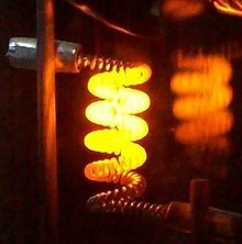 - eine Doppelwendel ist eine Wendel, die ihrerseits noch einmal zu einer Wendel geformt ist: durch die dichtere Packung in der Doppelwendel heizen sich die Wendeln gegenseitig auf, wodurch bei gleichem Strom eine höhere Temperatur und dadurch eine höhere Lichtausbeute erreicht wird.