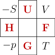 - Die Zustandsgrößen, welche die gegenüberliegende Seite des Quadrats