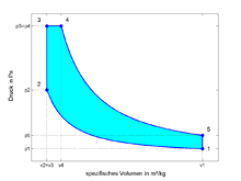 - (4 - 5) isentrope Entspannung. Energieübertragung in Form von Nutzarbeit