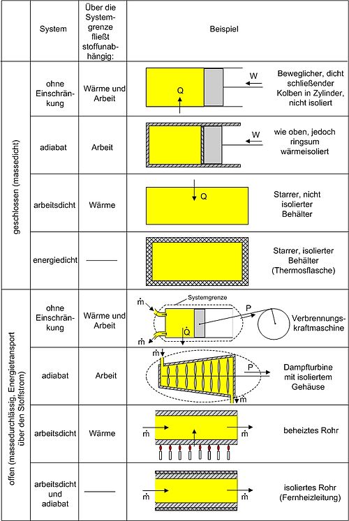Thermodynamische Systeme lassen sich nach der Wechselwirkung mit ihrer Umgebung klassifizieren; also danach, ob Energie und Materie die Systemgrenzen passieren kann: