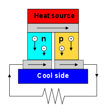 Durch Einsatz von Halbleitermaterialien (Werkstoffe und Aufbau siehe bei Peltier-Element) lässt sich der Umwandlungswirkungsgrad auf bis zu 3–8 % steigern und liegt damit deutlich unter dem Carnot-Wirkungsgrad. Damit kann man thermoelektrische Generatoren bauen. Solche Generatoren bzw. Wandler finden u.a. in Isotopenbatterien Anwendung und wandeln verschleißfrei ohne bewegte Teile Wärmeenergie in elektrische Energie um.
