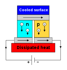 Je nach Vorzeichen des Stromes kann dabei Wärme freigesetzt oder Wärme entzogen werden. In aller Regel wird also der eine Kontakt warm und der andere kalt.